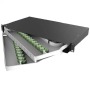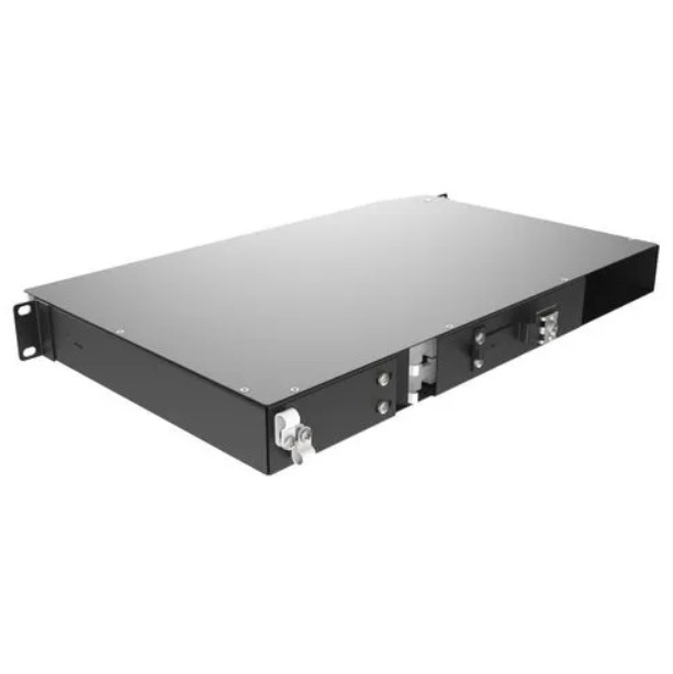 Distribuidor Interno Óptico (DIO) de 1U com capacidade para até 24 fibras ópticas.